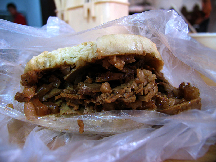 晚上10:00,按计划到达临河.病人不吃晚饭,我跟笨笨进了一个川菜馆,又被赶了出来,找了半天,只有肉加馍可吃.不对,不是肉加馍,是:肉培.太腻了,两个人要了三个,根本吃不了。