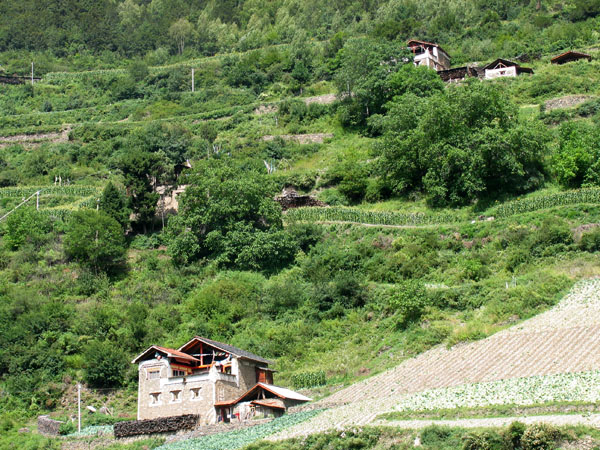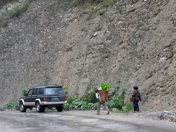 快天亮的时候醒了,然后就没怎么睡着,7点多笨笨也醒了,收拾东西下楼找早餐,一人一碗牛肉米线,很细很细的米线,不错。 从北川出来,继续在山里行进,这条路是修在半山的,脚下是一条大河。路两边有非常繁盛的植被,从草类,灌木到树林,应有尽有。峡谷里的雾气很大,山顶,山腰,江面,全都有簿雾覆盖。随着海拔的上升,雾气又变成了毛毛细雨,飘在路上,花上,树叶上,到处都是湿润的。翠绿的竹子在路边弯了腰,跨过路面,横达到路另一侧的杉木上,将车开在这绿色的屏障里,摇下车窗,便可以闻到泥土的味道,树木的味道,花草的味道,还有雨的味道。最喜欢把车开到高大的树林之下,听雨落到车上发出达达的响声。多么完美的一个早晨。 笨笨把车从一个小村子往上开,快到山顶时,村子还没有消失,太佩服这里的人了,串个门上下海拔就得好几百米。 这里种了很多的圆白菜,大大的叶子包着菜心,在地里一朵一朵的。以后我要是有了一亩三分地儿,我也种圆白菜,真好看! 笨笨想上厕所,又不敢停车,怕他下车的功夫,我跟车一起溜回村里了。这里的坡真的是太陡了。 从山上下来的时候,天已经晴了,到茂县的时候只有11点多,我们继续,在汶川吃了中饭。