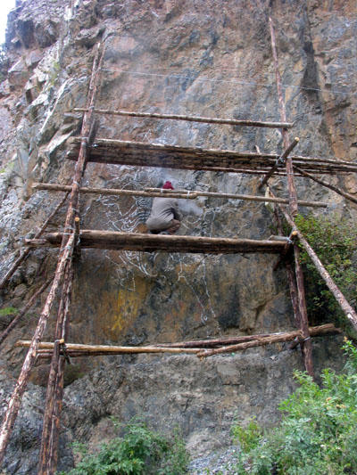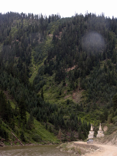 路过一个叉口,我本来走对了方向,可笨笨偏说不对,我们又折回去换另外一条路,迎面来了一个摩托车,赶紧问路。果然是我先前走的路是对的。那个人问:你们去甘孜?我们点点头,他又说:就你们两个人?我们又点点头。告别那个人之后,我跟笨笨说:他不会是要打劫我们吧?