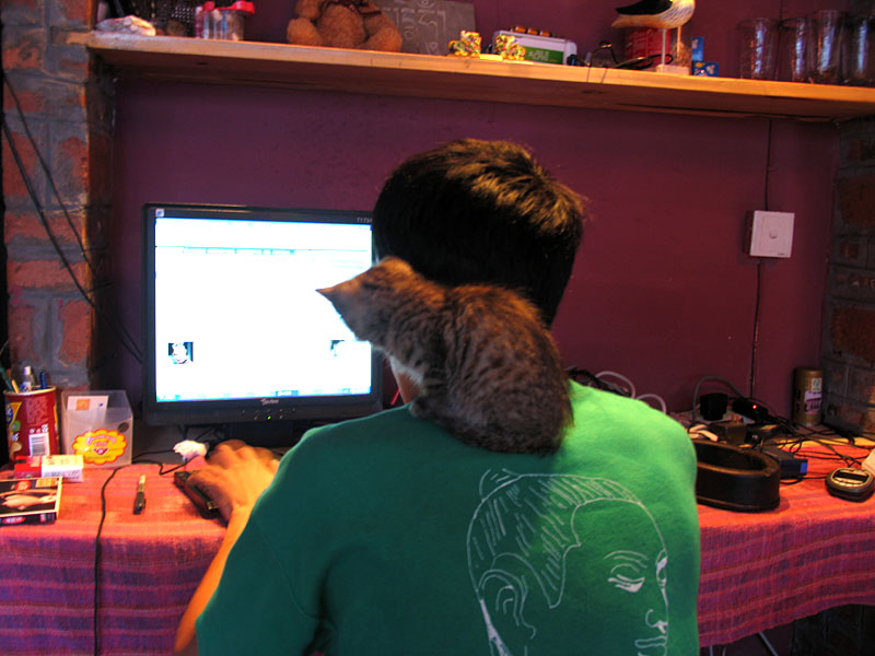 晚上的时光上网,聊天,喝茶。当然,睡觉前还要跟猫猫再玩一会儿。