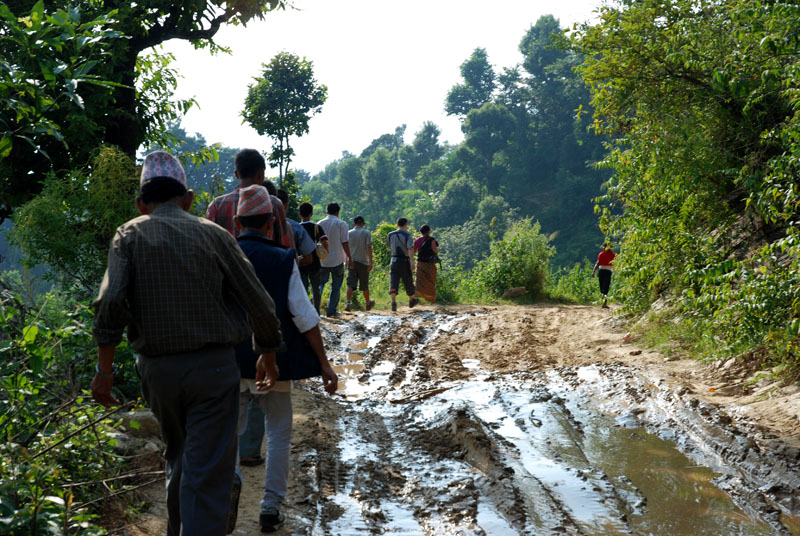 最后一次停车,我们4个都麻木了,呆呆傻傻,一身臭汗+尘土站在路边。时间已是下午4:30,我们距离终点还有直线6公里,哈里说,还要1个半小时,好在不再陷车。