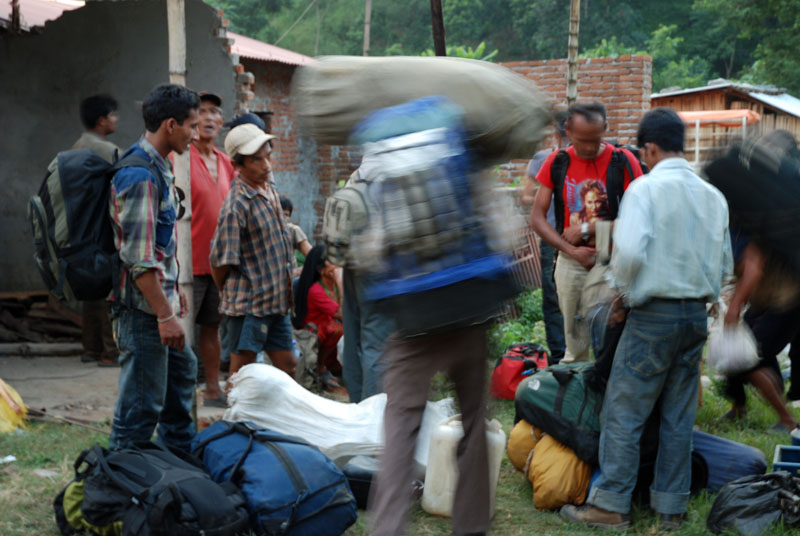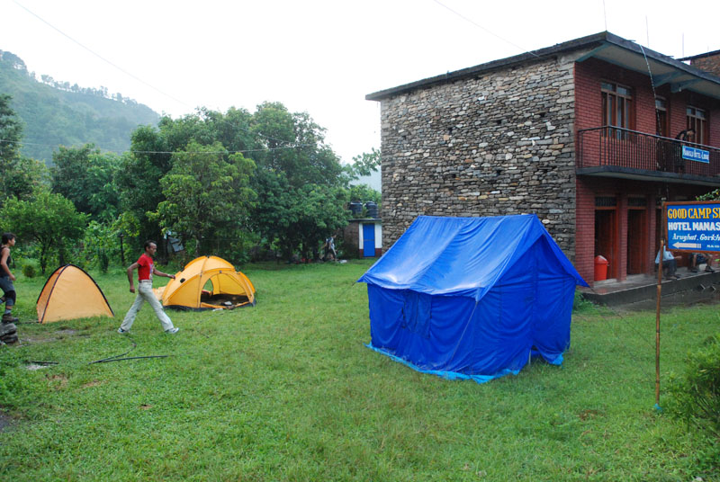 吃饭的时候跟鬼子的队伍打招呼,他们是西班牙人,也是走manaslu环线,中间可能还去某个小山玩玩。天气还是热,GH里唯一的几个房间都被他们占了,我们不想去住还没盖好的GH,里面巨热无比,选择了露营。风不吃饭就跑去洗澡,连给我们布置的拍摄工作都忘了(我们说好每人一天对着DV讲1分钟,记录当天的日程)。