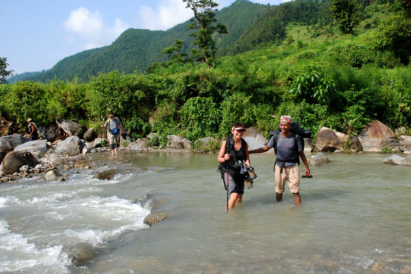 nepal的雨季还没有完全结束,我们要尽快适应。昨天笨笨还在算,从家出门一周了。拉萨,加都各休息了一天,其余时间都在路上。今天,徒步终于开始了。