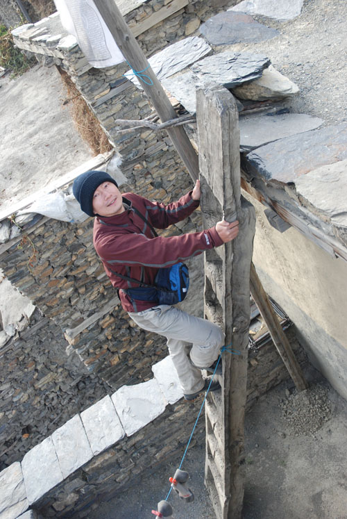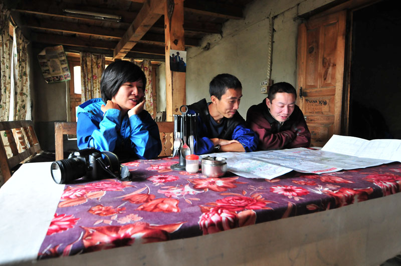 Khangsar村子不小,但由于去tilicho lake的人有限,而且大部分的人都是住在manang,只从这里路过,所以住宿完条件全跟manang没法比。哈里说有好消息,拿着地图给笨笨讲,原来跟我们同一时间穿tilicho lake的队伍不少,明天我们可以浑在另一个队伍里,就不用自己找本地向导了,估计哈里也松了一口气。他只做为porter穿过一次tilicho lake,而且当时一路大雪,天气非常恶劣。带的两个德国老爷差点就被他们弄丢在山上,最后也是遇到了对面穿越的队伍,才算找到路,冲了出去,2个月后,哈里在加都见到他们的guide,两个手的手指还发黑呢(冻伤)。