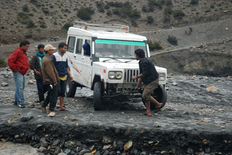 前天晚上是一夜的雪没停,昨天晚上是一夜的雨没停。留在Thini也没意思,我们还是决定先去marpha再说。