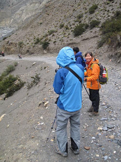 他还问我们为什么不坐车回博卡拉,而要走去下一站的marpha?我们没想到这里已经有车通到博卡拉了,真是这世界变化快啊,也许以后走安娜大环就是飞到jomson,走个throng la山口到manang,然后就可以从humde飞回博卡拉了。就是说,安娜大环就只有一个throng la山口了。等我们60岁的时候就可以说,当年我们走大环的时候,它还是一个完整的环线。