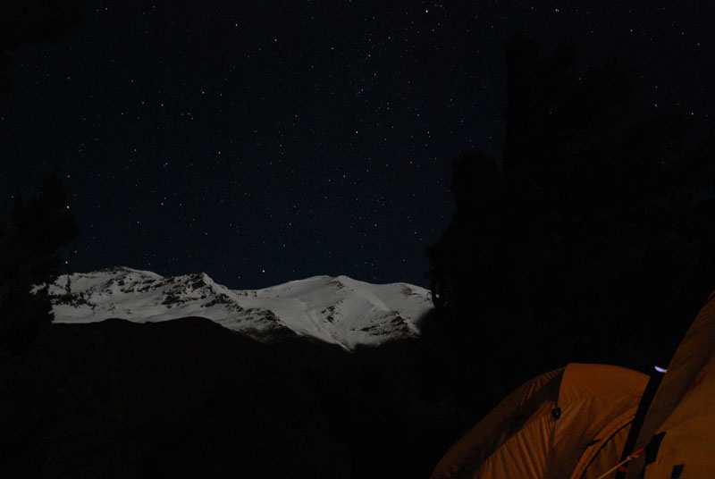 看来guru三兄弟是认路的,哈里也是跟着他们走。我们确实已经到了营地,号称5个小时的路,只走了不到3个小时,大中午就收工了。大家开始寻找合适的露营地。黄格子示意笨笨地上有虫子,我们低头发现这里有很多很多的跳蚤,我们顿时紧张起来。为了躲开跳蚤,我们选了一个比较远的营地,但也量个绝佳的观山景地点。
