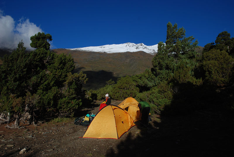 晚上阵风很大,笨笨裹了两个睡袋,又垫了羽绒服在身下,我睡marmot的大睡袋,一晚上脚下还是凉凉的。