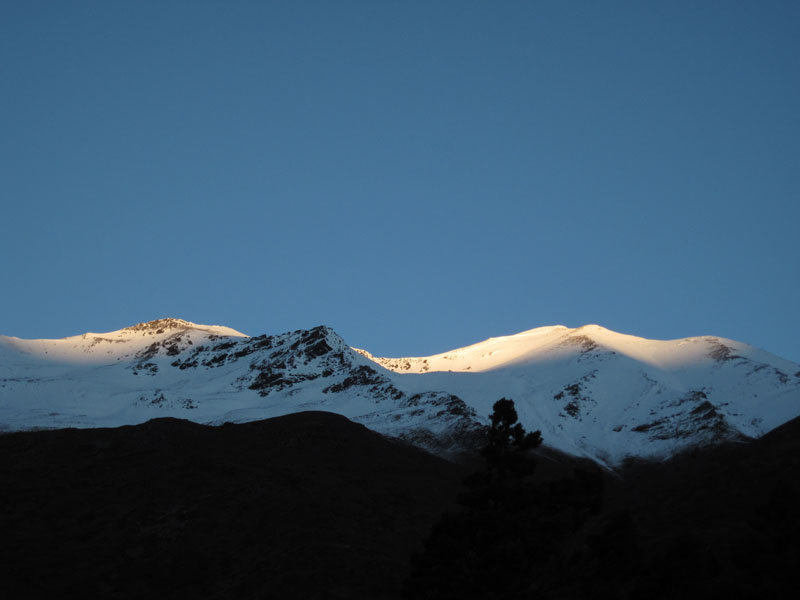 笨笨只说了一个:down。所有porter都在瞬间消失在大雾中,只留下我们4个慢慢移动。笨笨一边骂着:兔崽子,一边找着下山的路。按GPS的指示,我们原路下山,哈里波特们则在大雾中选择直线下降。从4900回到4200,风雪明显小了。等他们看到我们的位置,也向我们靠近。我们的行李都被放在原地,他们还是要回到上山时的小房子去住。