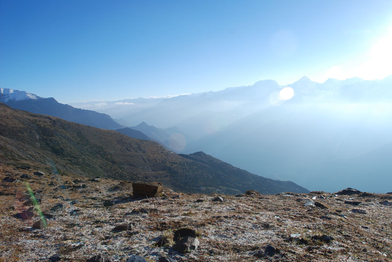 躺回帐篷,畅想啥时候完成这个“D”计划,也许明年3月跟杨春风他们混一下,可以省掉跟porter们打交道的麻烦。笨笨和风还对dampers peak产生了兴趣。风这次一定很伤心,他是个完美主义者,上次走大环,只有他坚持不坐车,从Jomson走到了lete,这个由他命名的MAD没有圆满,我只能替他难过了。