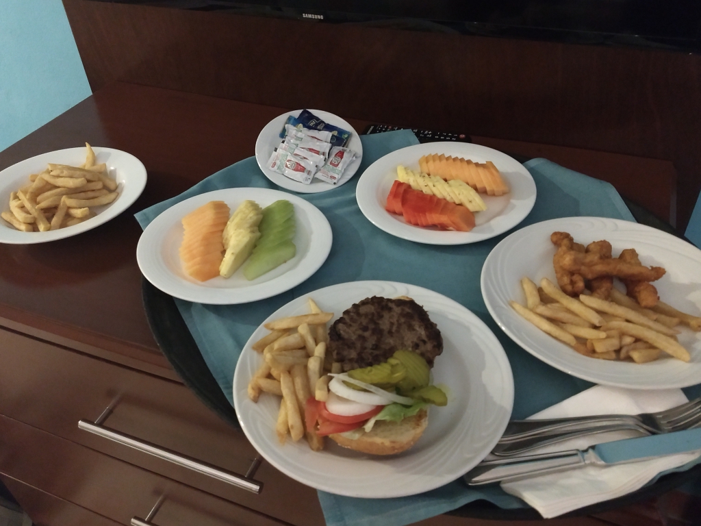 我们到餐厅的时候,好象刚接完团,员工在吃饭,没人给你点餐。我俩乖乖坐着等。好不容易他们吃完了,服务生告诉我:今天没有海鲜pizza,什么 pizza都没有,只有汉堡。笨笨气得不行,我又跑去掏出手机,给服务生看我们之前点的pizza,对方还是摇头,真的没有pizza。