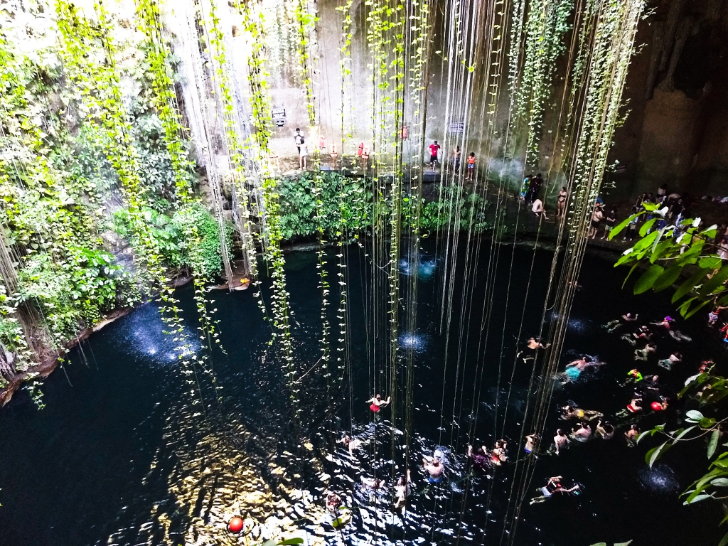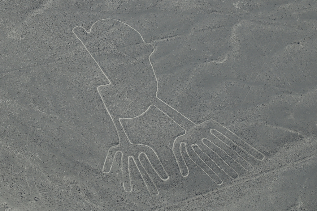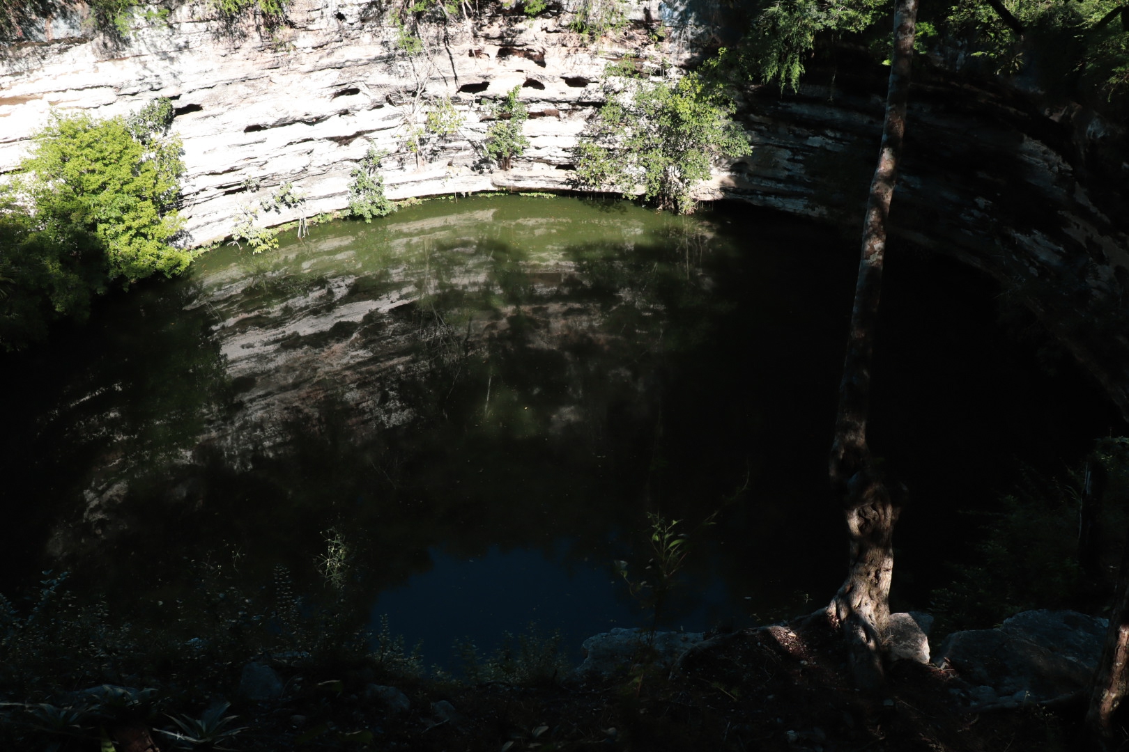 向导找到一个向下的冰洞,他在洞口打了冰锥当锚点,我们依次走到洞口与锚点连接确保安全,然后可以拍照。