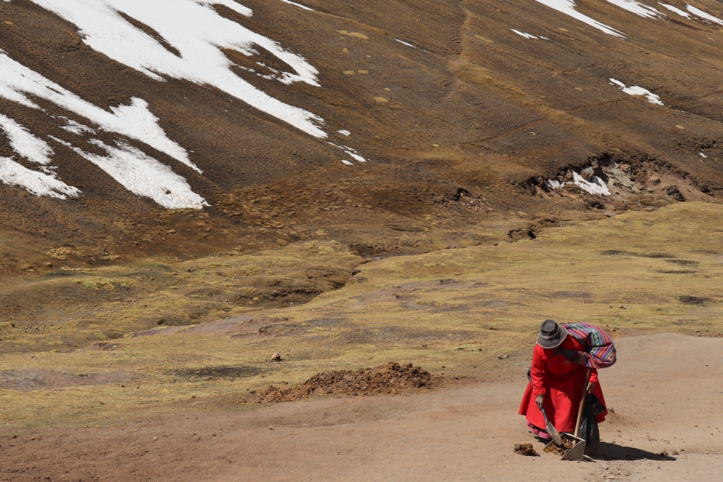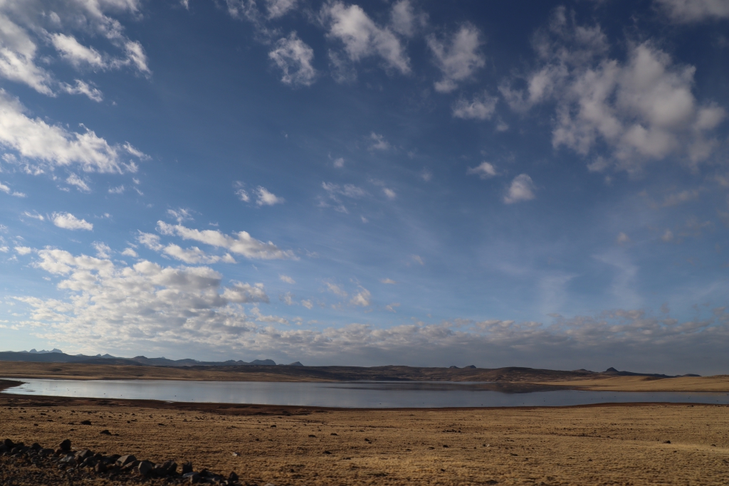 第三天要过山口,心理有准备了,走起来倒也还好。从营地出来就在树林里爬坡,等出了树林就是大风,和一个又一个的坡,永远看不到山口在哪里。路上不少一个人徒步的姑娘,今天碰到这个还穿着条紧身裤,真不怕冷。