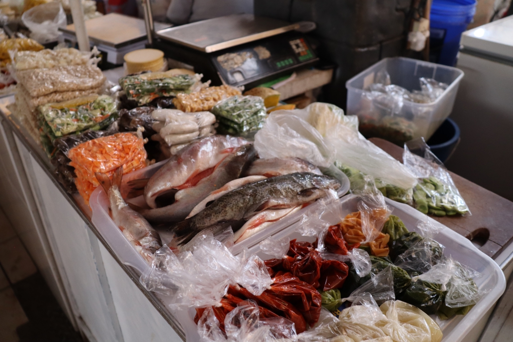 雨一直没有停,餐厅里所有人都湿搭搭的在做饭,人多,炉子也多,倒是很暖和。