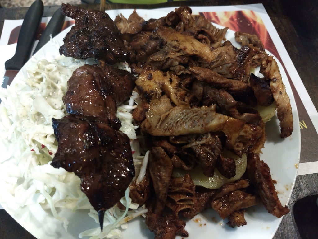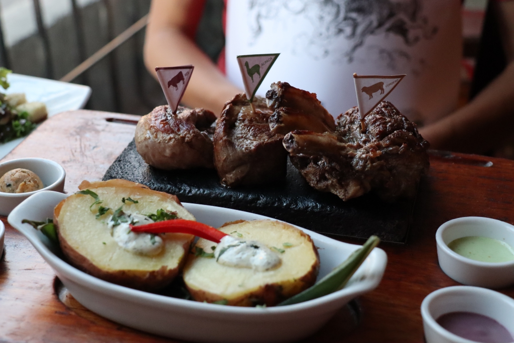 晚餐是套餐:沙拉,主菜:牛肉,甜品三道,160人民币/人,没想到超级难吃,那一大块牛肉就象是塑料一样,真是给智利牛丢脸。