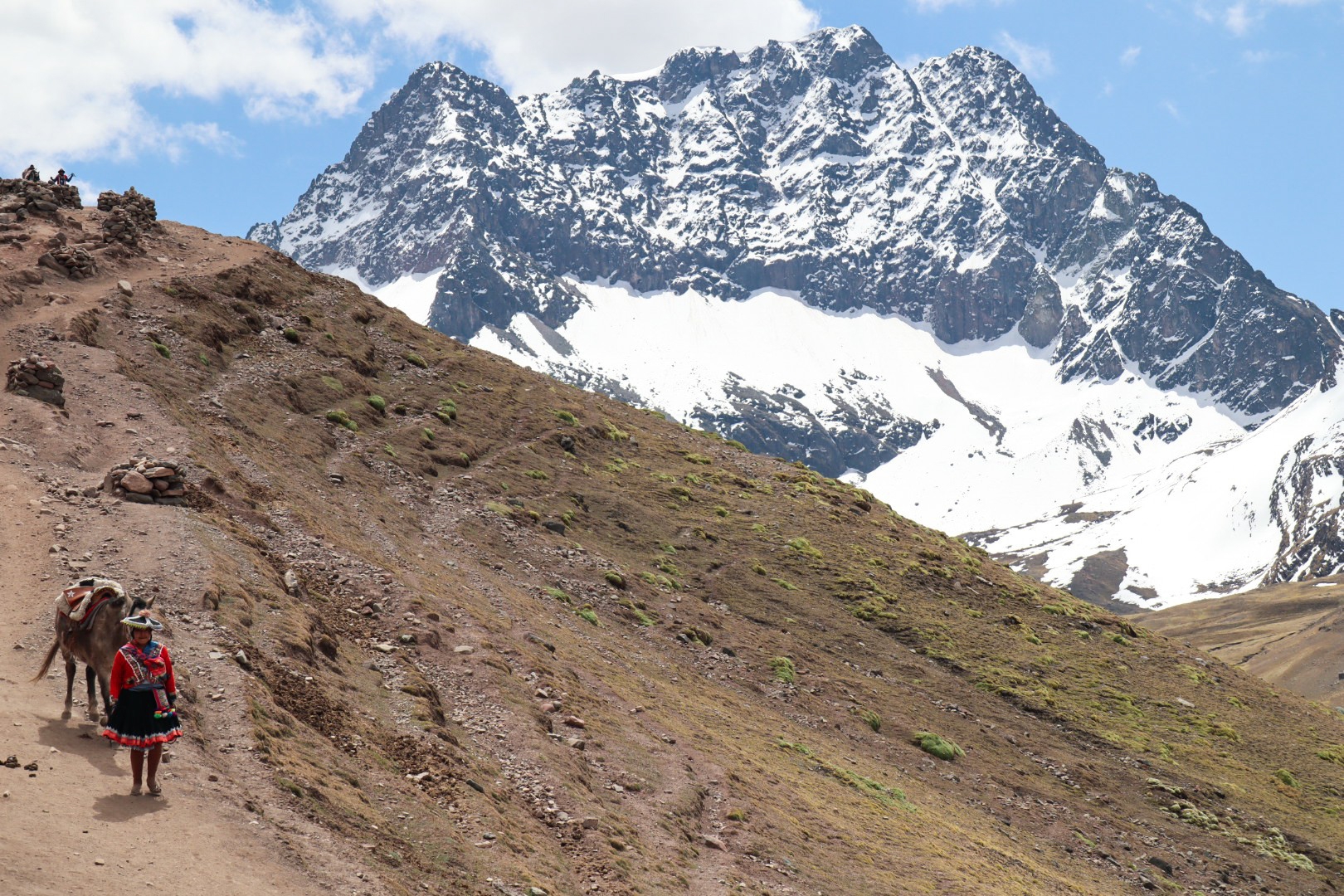 到了山口就看到那条横在眼前的巨大冰川,我们要顺着它下山,但路也不是那么轻松,要在山脊上不断的上上下下。路上碰到一个意大利老年团,估计平均年龄60+,可人家背着大包比我们走得还快。