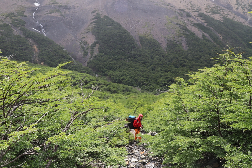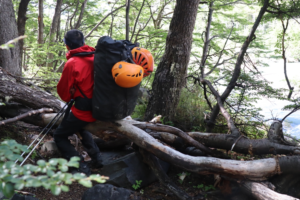 我俩从山上“逃”下来,回到公园门口的营地洗澡换衣服,重新整理装备,留下所有攀登装备,带上所有的食品,当天继续上路。其实我们申请了两个地方的攀登允可,但另外一条线需要2条绳子下降。我们预估了一下所有装备的重量,以及天气情况,决定还是放弃攀登,踏踏实实的去徒步。