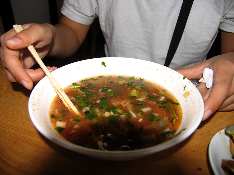 到了门士,还是找到了去年住的旅店,干净的小院有一口水井,房间里居然还有电视,只可惜没有天线。去旁边的餐厅吃晚饭,企图寻找去年见过的大师傅,因为他和我们有一些缘份。他年青的时候在北京的到家尝学徒,2001年我们到西宁的时候,就住在一家到家尝对面,而那时,他也在那家店里。可惜的是,今年他已经不在这里了,也许就象他去年说的,他来这里工作,跟我们一样,也是来玩,呆够了,就去下一个地方。