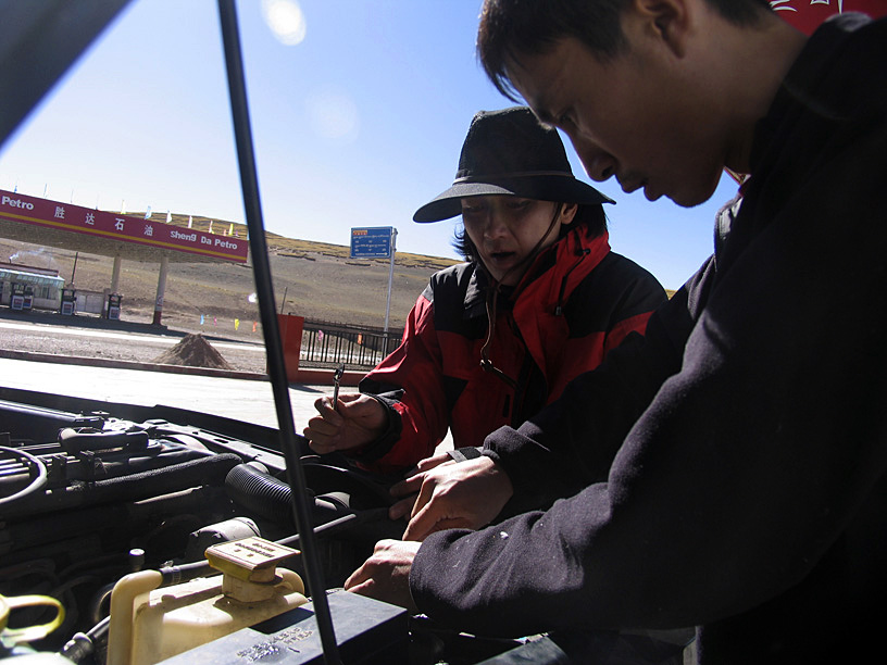 不一会儿,小店里就坐满了人。两个司机就坐在我们后面,笨笨跟他们聊天,什么时候出发的?今天晚上住哪里?明天什么时候到普兰?车是哪年的?路况怎么样?。。。这是他的爱好,所有跟车相关的事情,相关的人,他都喜欢。车上的生意人,忙着吃饭,还有4个游客,一起交流着旅行的经验。今天的晚餐依旧很合我们的口味,有老板新煮的羊肉,沾上些调料,吃的全是羊肉本身的香味,谁说阿里的饭不好吃的?真是要骂他笨了。。。