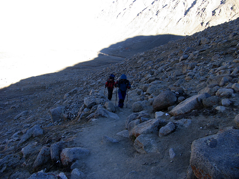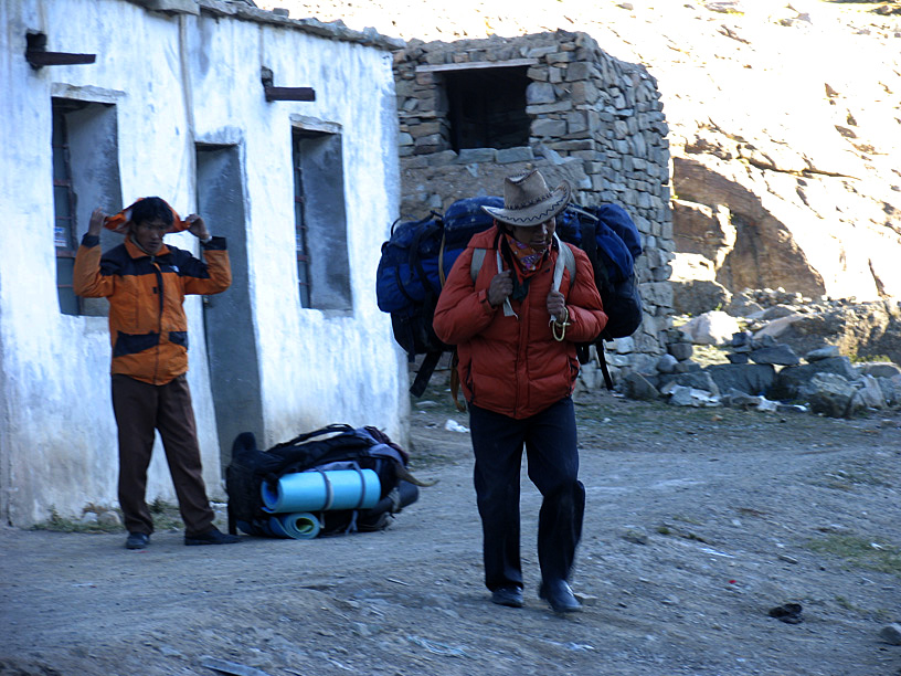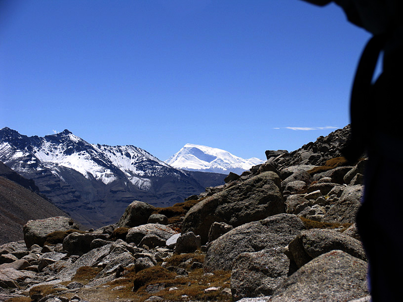 这个餐厅是新修好的,进去才发现真是一流景致的餐厅,西边整面的玻璃窗外就是喜玛拉雅山脉的群峰,而纳木那尼还是那最显眼的一座。菜的味道一般,但这里的景致足以抵去我们在饭菜上的损失。补充了大量的茶水后,我们离开了大金。
