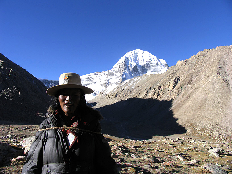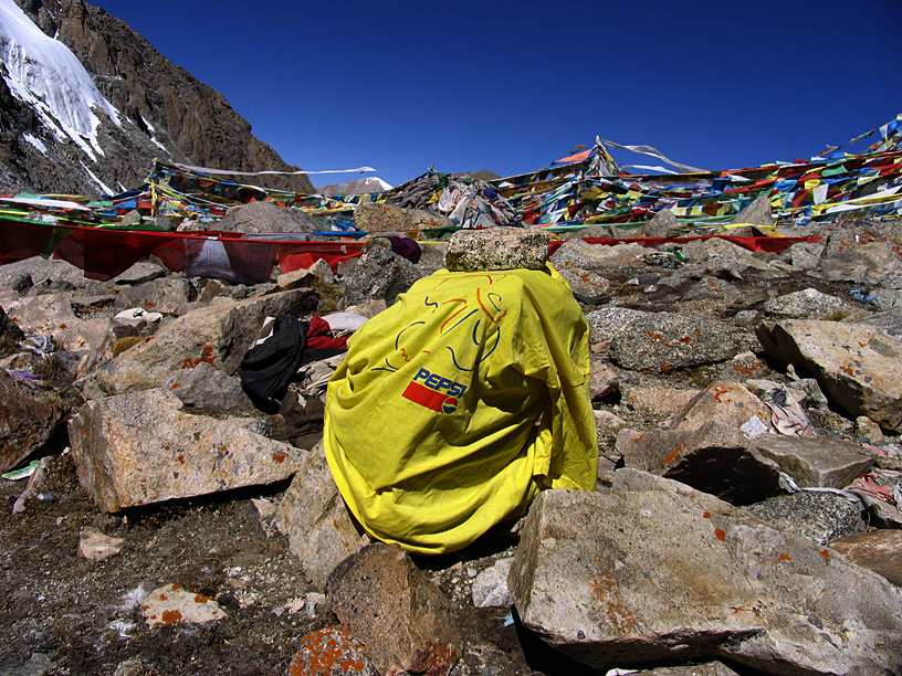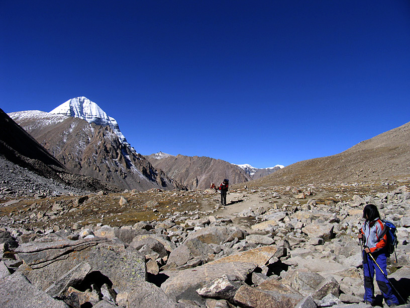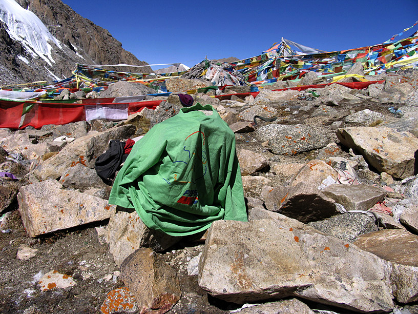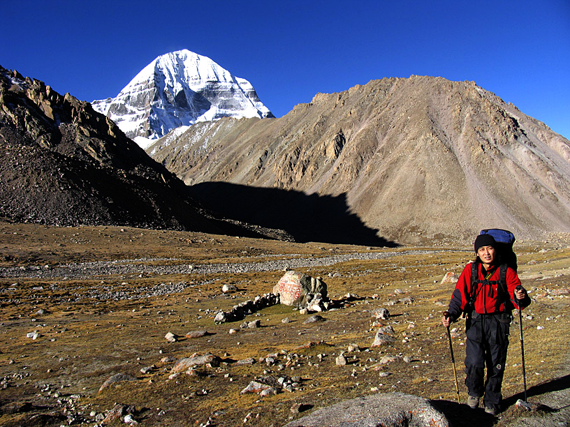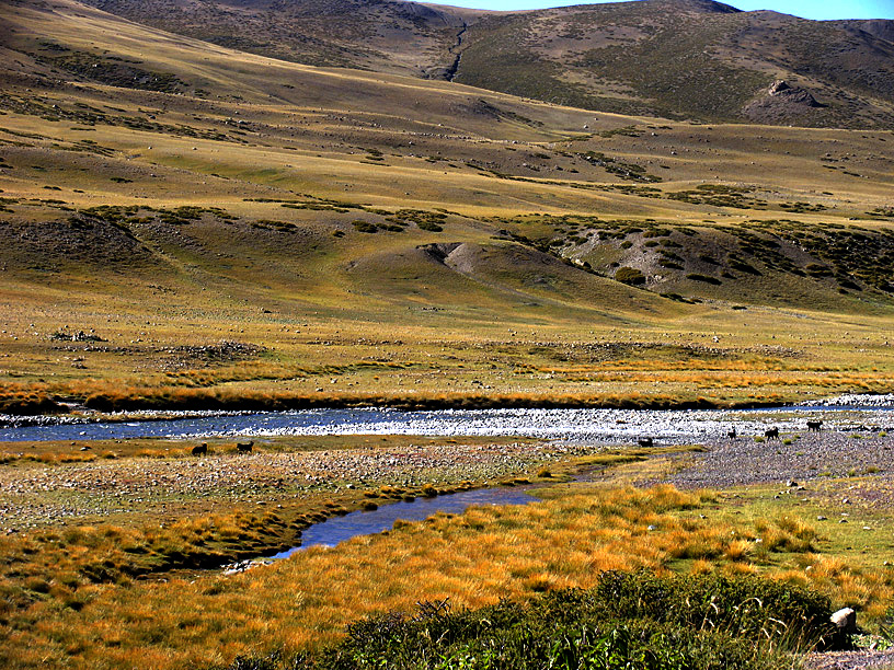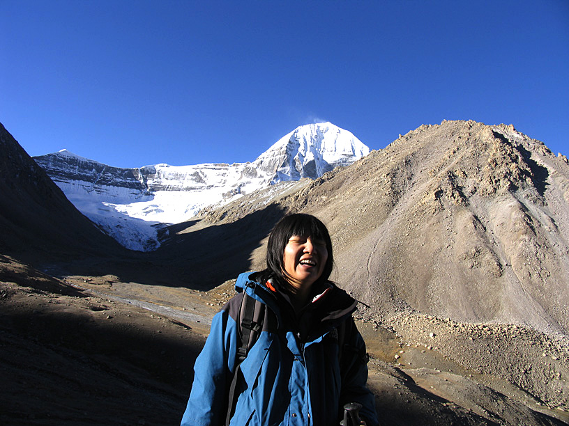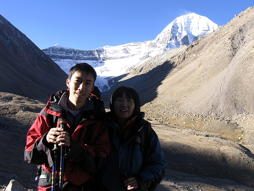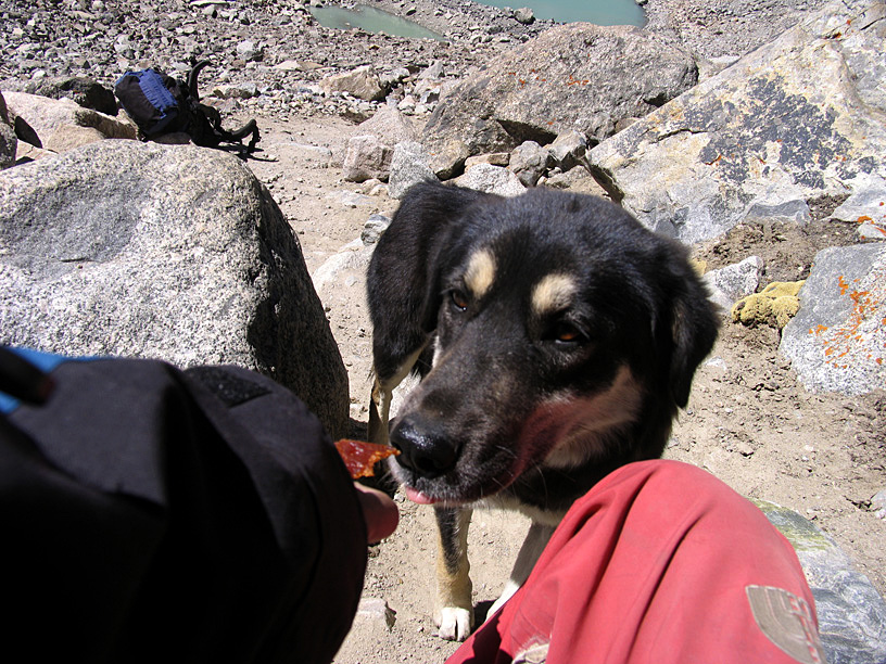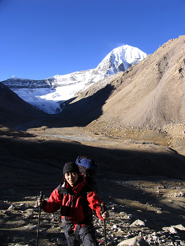 山路上只剩下我们两个,左边山涧里从冈仁波齐融化的雪水哄哄的流过,我们在山坡上慢慢行进.在后面看着他的背影,心里有些难过.他本该是山里快活自由的一只小狗,嗅着花香,戏着虫草,但现在我们只是在坚持着完成我们的路程.