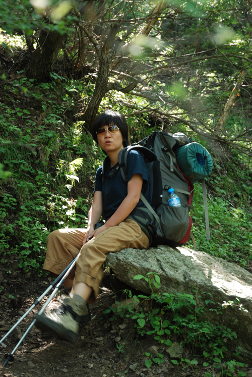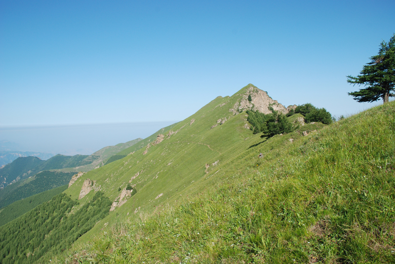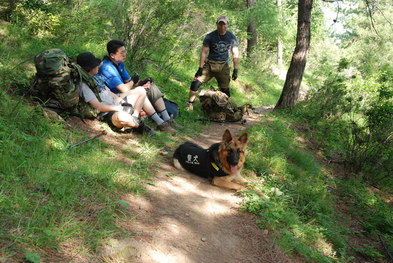 没走几步,老尼就落在后面了,我和笨笨在前面,不想走盘山大路,就走小路直上。每走完一段就停下来等老尼。我们不在北京期间,他长了十多斤肉,手背上都出肉坑了,现在是个胖子,难怪走不动呢。