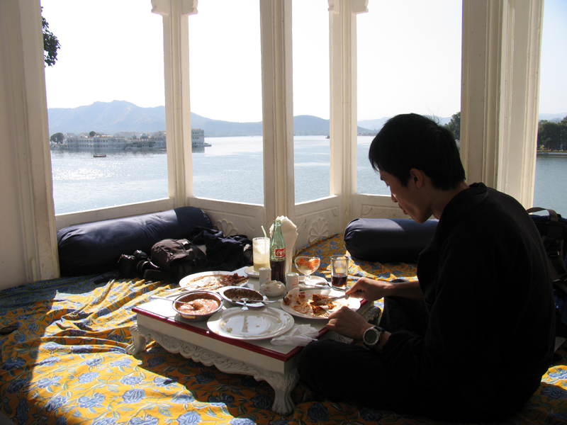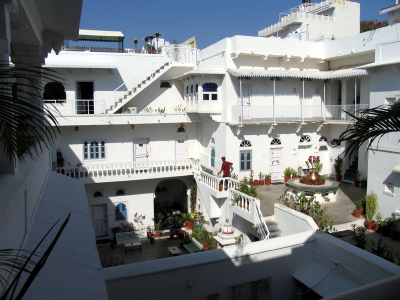 准备结束晚餐的时候,酒店里唯一的一对邻居,两个女孩刚刚进入花园,和所有的人道过晚安,我们回到了房间。躺在那雪白的,松软的大床上时,老者又在为女孩们歌唱。而这隐隐约约的歌唱正好送我们进入梦乡,就让它带我们继续神游Rajasthan的大地吧…