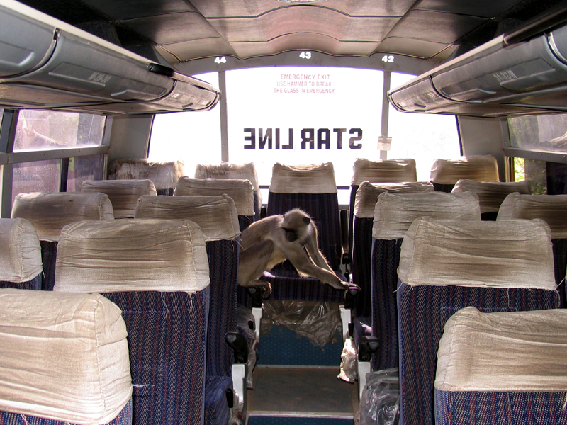 经过一阵混乱,我们能确定的是,我们必须先去***。马路边上正好停靠着一个去jodhpur的大巴,乘客们都在车下休息,我们也认不清谁是售票员,便先上了车。不一会儿又上来一对情侣,折腾着坐下了,又为座位的事情在闹别扭。等我们确认了这个车可以送我们去***四个人全被哄到了后面的座位上。而他们还在继续着毫无意义的争吵。女孩子开始小声的哭泣,而男孩子还在解释着什么。