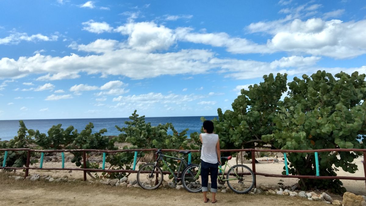 特立尼达西侧7,8公里就可以到达加勒比海,我俩决定租个自行车骑去看看。但车座实在是太硬了,再加上路也不那么平,我一路骑得好痛苦。