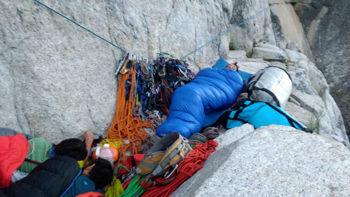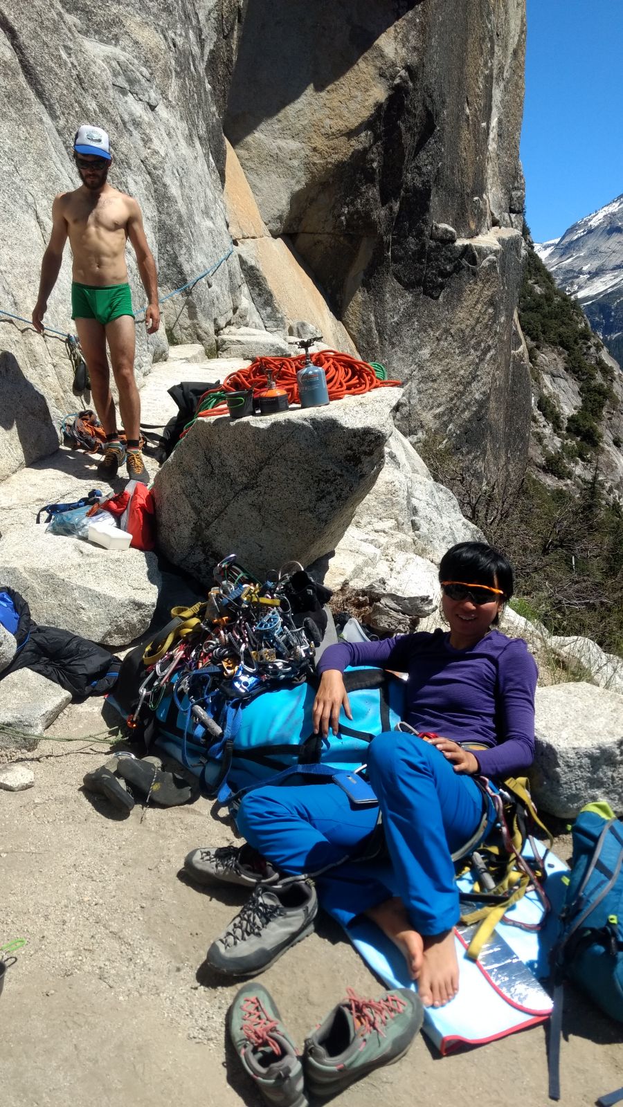 我们和日本队前后脚到了dinner ledge平台,日本队时间有限,所以马上开始继续向上爬,去固定绳子。我俩观望了一下,觉得他们需要比较长的时间,索性踏实的扎营休息看风景。