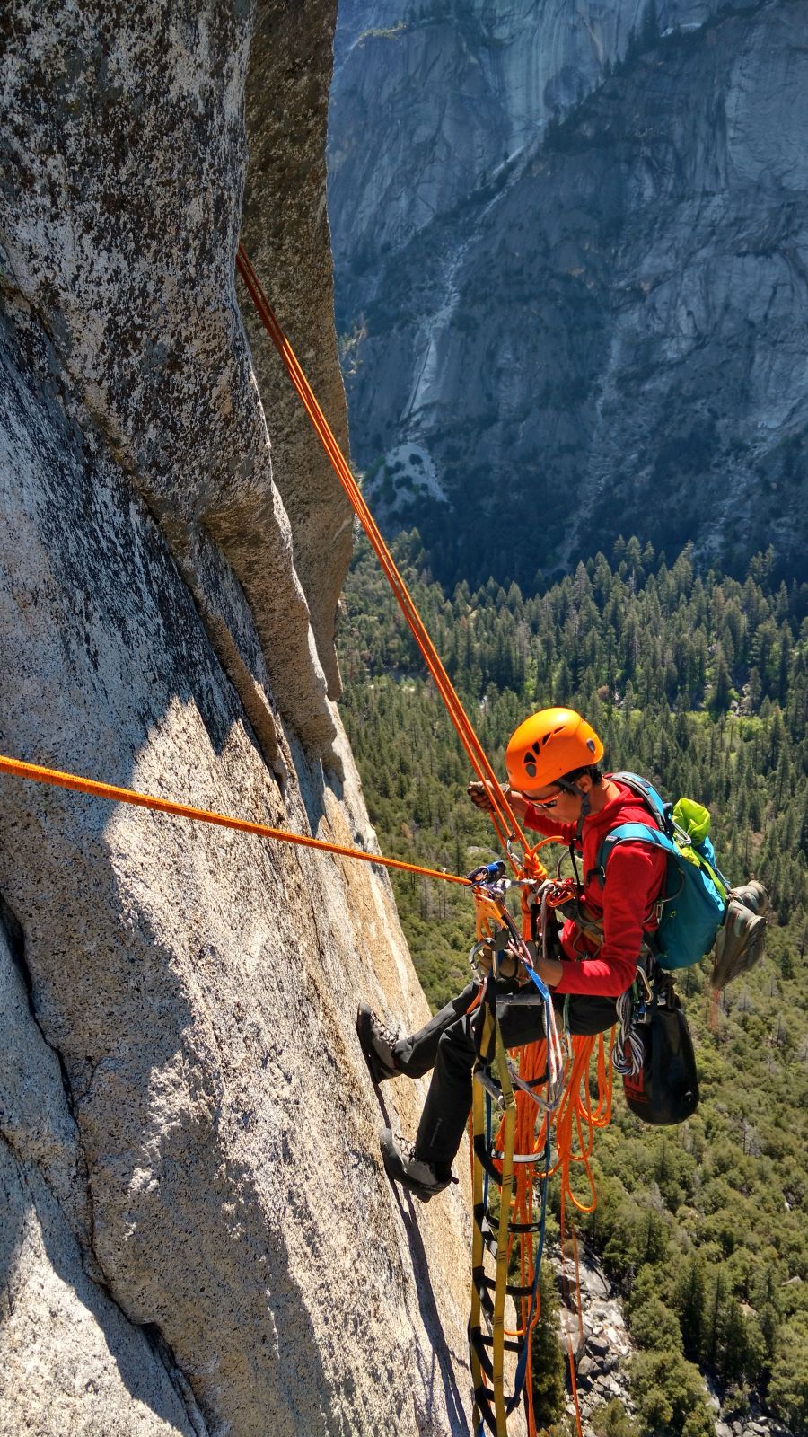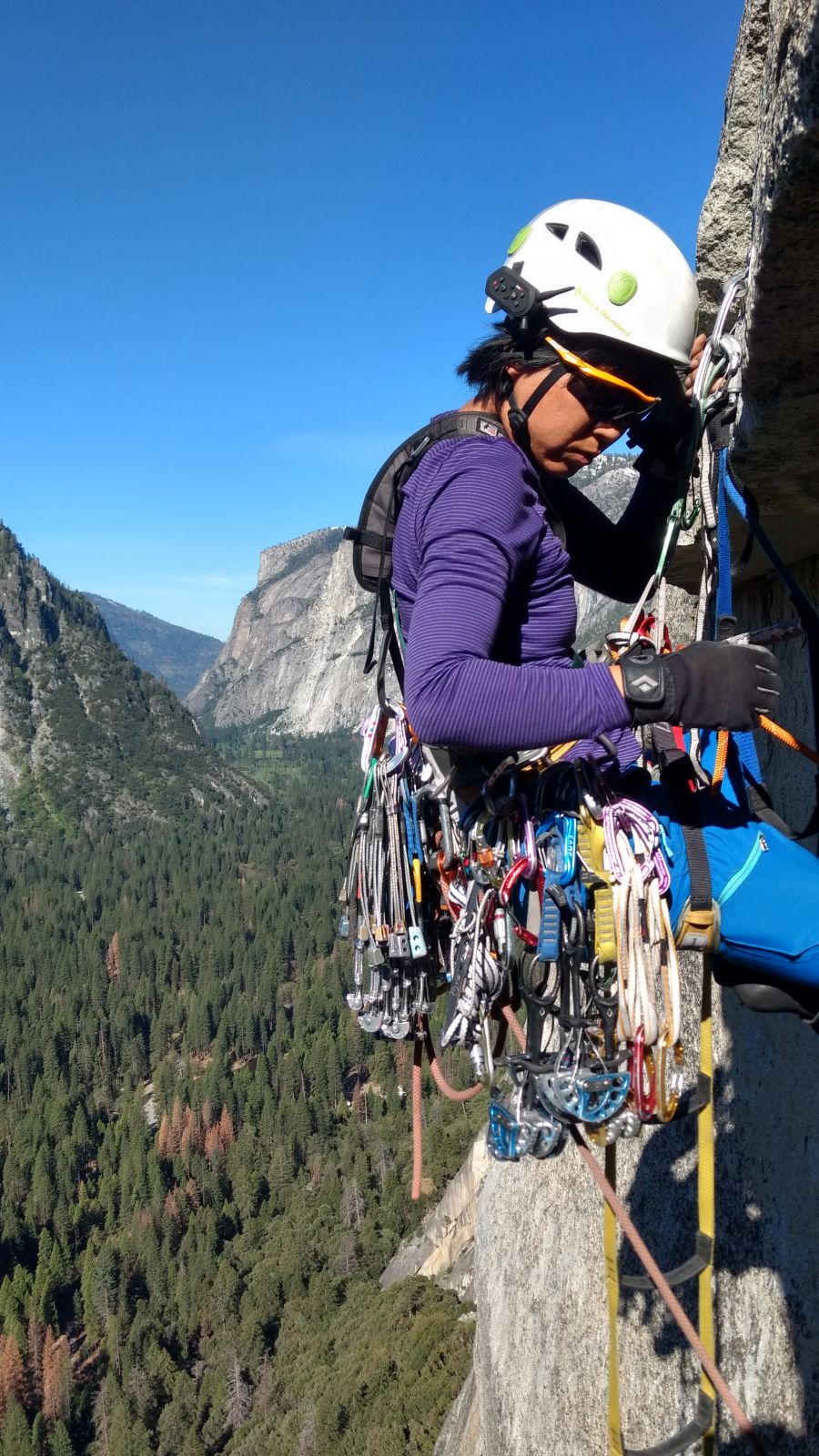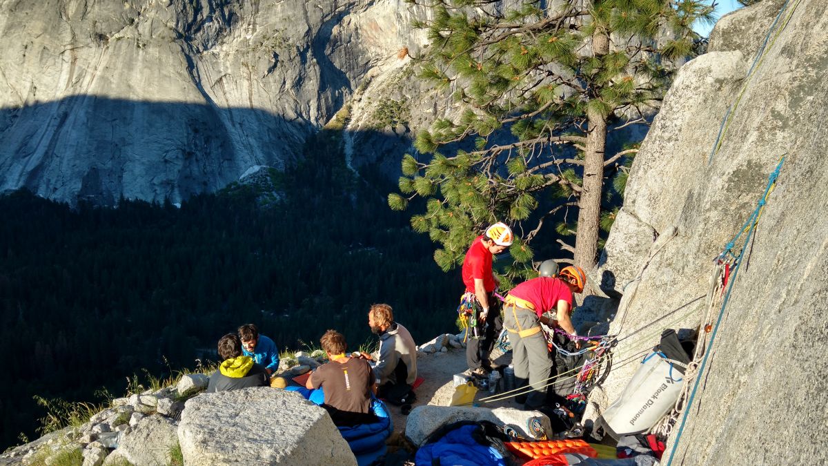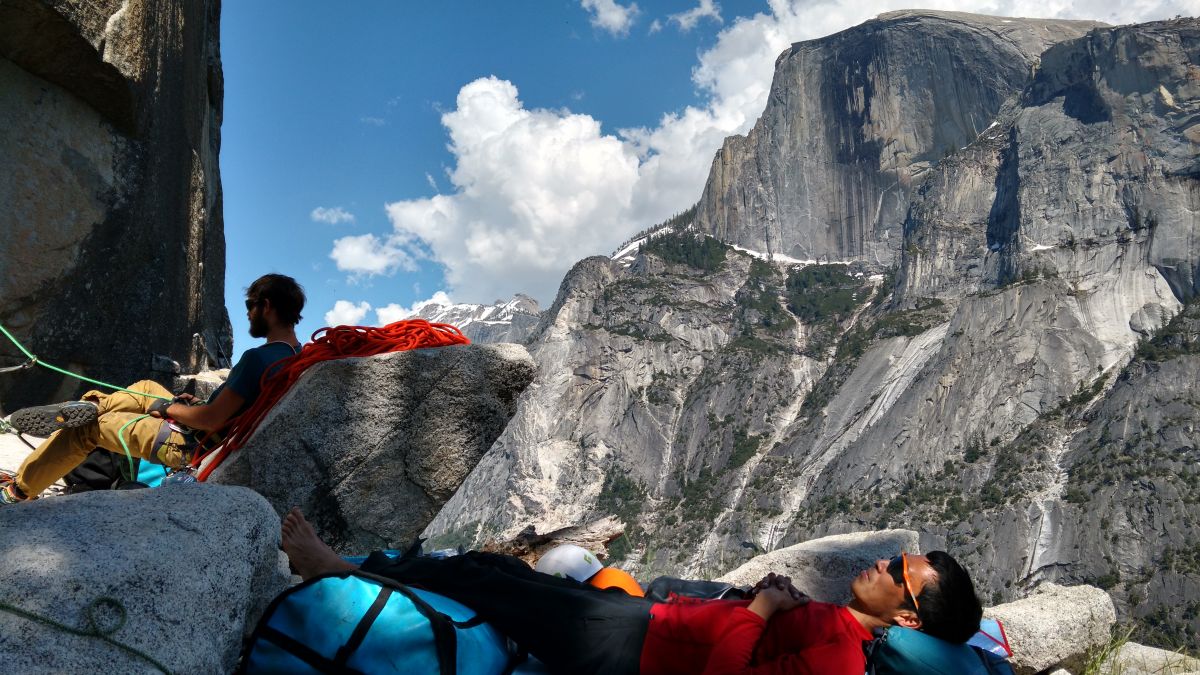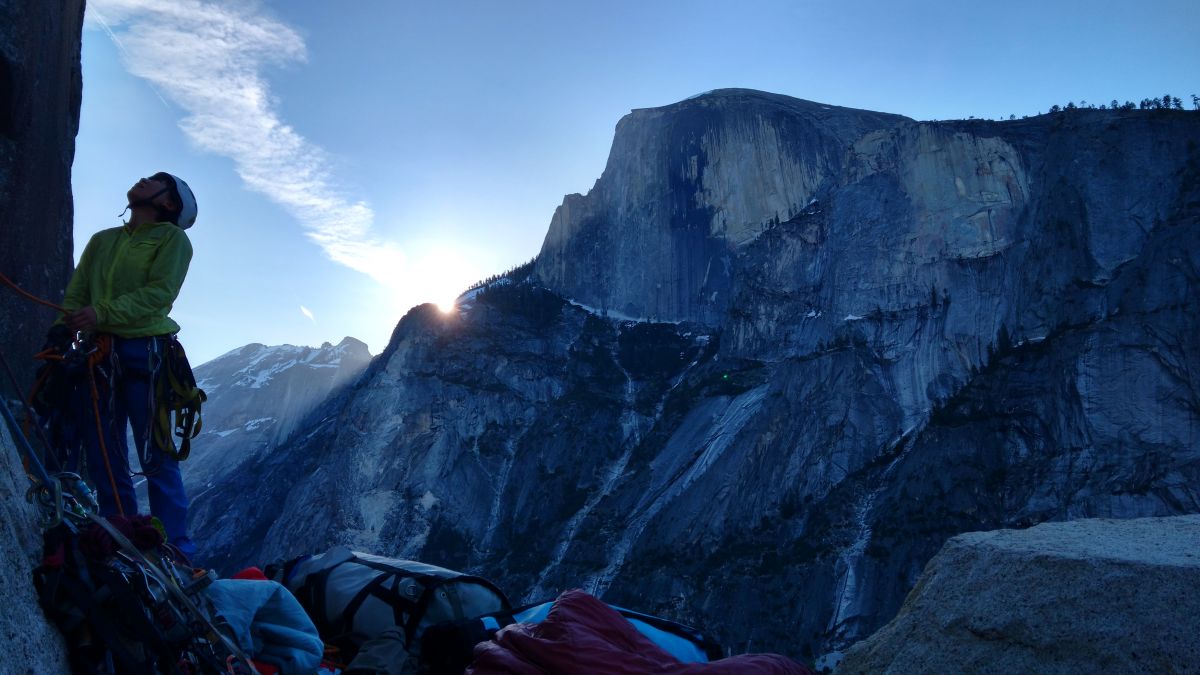 正在收拾装备时,平台上又来一个印度裔美国人,他跟大家打完招呼,说他和搭档就是上来住一晚,不再继续爬,明天是他们在the valley的最后一天。他们本来计划去Half Dome,但雪大,不能爬。
