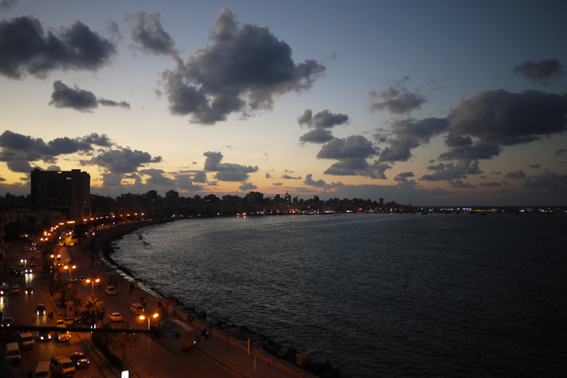 晚上坐上无轨电车去继续海鲜大餐,车上几个小男孩一边打闹一边对我们指指点点,被旁边的3个大叔训斥。我们自从入埃及之后,紧绷的那根神经终于松了下来,开罗已经没有那么险恶,而亚历山大人就更加优雅,平和。