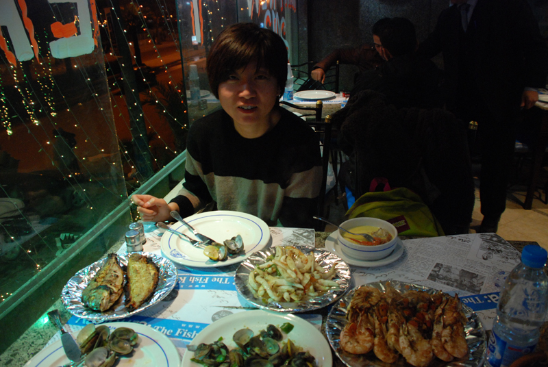 晚餐味道好极了。现在,kalamaari已经成了笨笨的最爱。这里不骗称真好,怎么也不相信我们要的每份都只有半公斤。