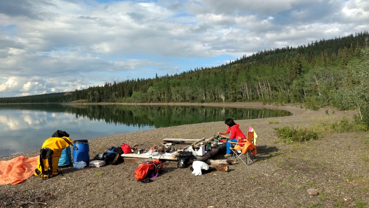 在育空河上漂流,更象是给自己找个理由来旷野里露营。每天除了划船,更要花很多时间:找营地,建营,做饭,拆营。对我来说,它与住在房车里如此不同,天天听着鸟鸣声入睡,也是妙不可言。当然,也有特别吵闹的动物,我和笨笨几天之后说起这两个家伙都是:臭松鼠,臭乌鸦。