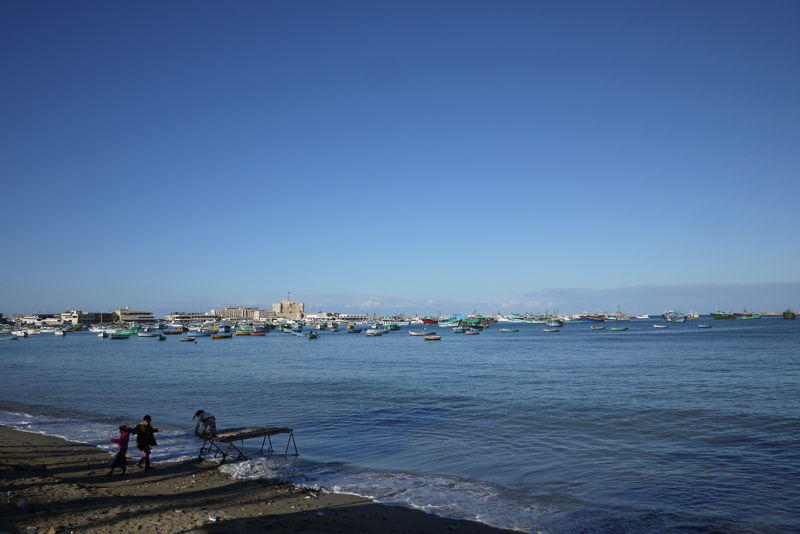 从一侧海岸线走到另外一侧,这边不是旅游区,沿岸很多船厂。天就快黑了,我们等着吃最后一顿海鲜大餐。
