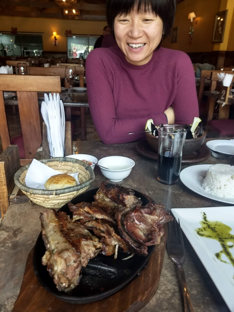 因为要在镇上采购,我们订了下午2点的大巴进公园,本以为提前邮件申请的登山许可就可以直接用了,结果到了公园检票处被告知,必须再去管理处登记。我俩折腾着3个大包,换了大巴赶到管理处。