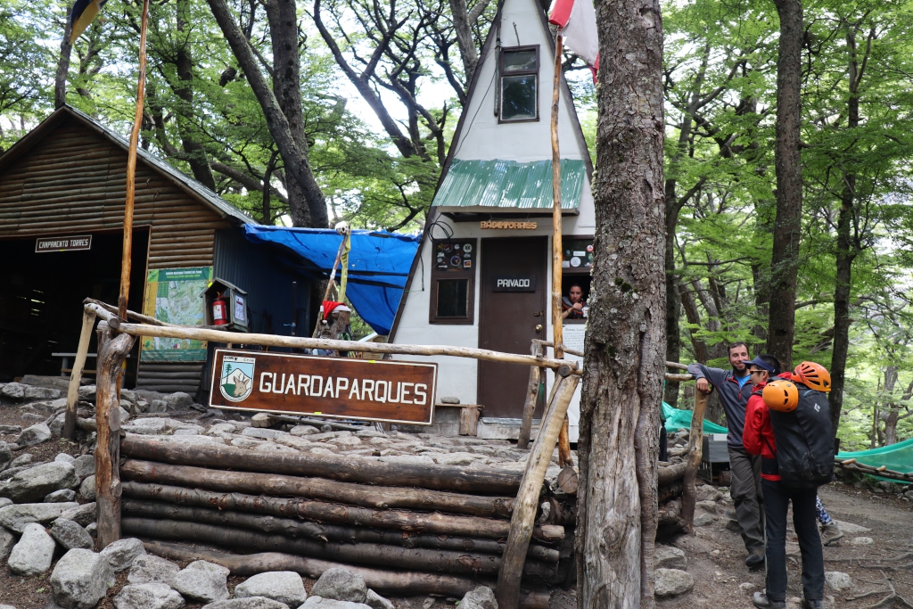我们重新整理了装备,存了一个大包在营地,背了所有攀登装备,露营装备和4-5天的食品补给就出发了。先沿着徒步的步道走到ranger station,这也是游客被允许到达的最远地点,交上许可证。问了问天气,ranger说每天下午6点左右都会变天,不太好说。然后又说了一句:现在这就是典型的patagonia的风。