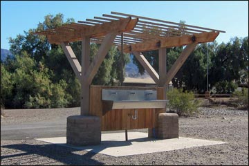 这次发现死亡谷(Death Vally)公园很先进,公园门票、营地付费都可以刷卡。这样就不用每次准备现金零钱付营地费(没人给你找钱)。营地还有气派的全不锈钢洗漱池,供Van和房车使用的加水、排污水设施,厕所是冲水马桶,有充足的手纸是最基本的,不用说了。